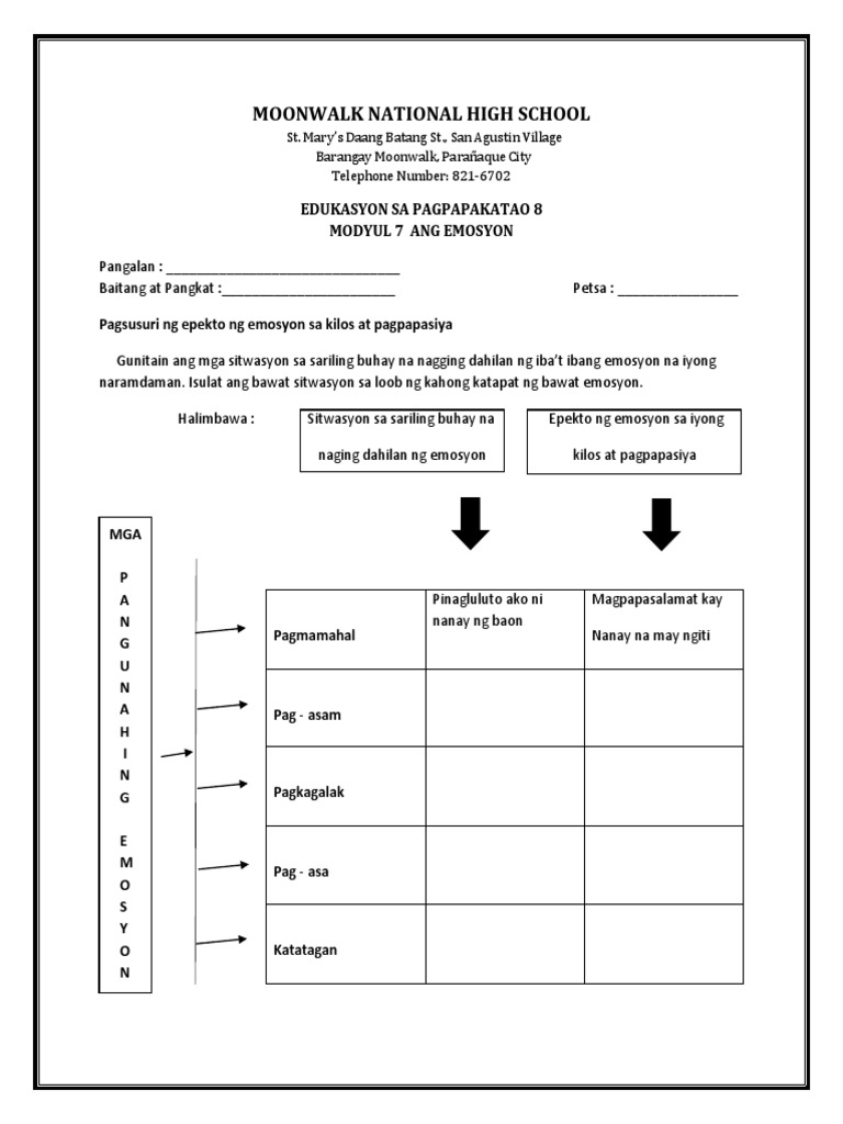Sitwasyon sa sariling buhay na naging dahilan ng emosyon katatagan. Isaisip na sa inyo nangyayari ang sitwasyon. At sa kabila ng lahat may Diyos na gumagabay sa atin at naniniwala akong lahat ng nangyayari sa ating buhay ay hinahayaan ng Diyos ng may magandang dahilan. PAG-ASAM PAGKAGALAK PAG-ASA KATATAGAN PAGKAMUHI PAG-IWAS KAWALAN NG PAG-ASA.